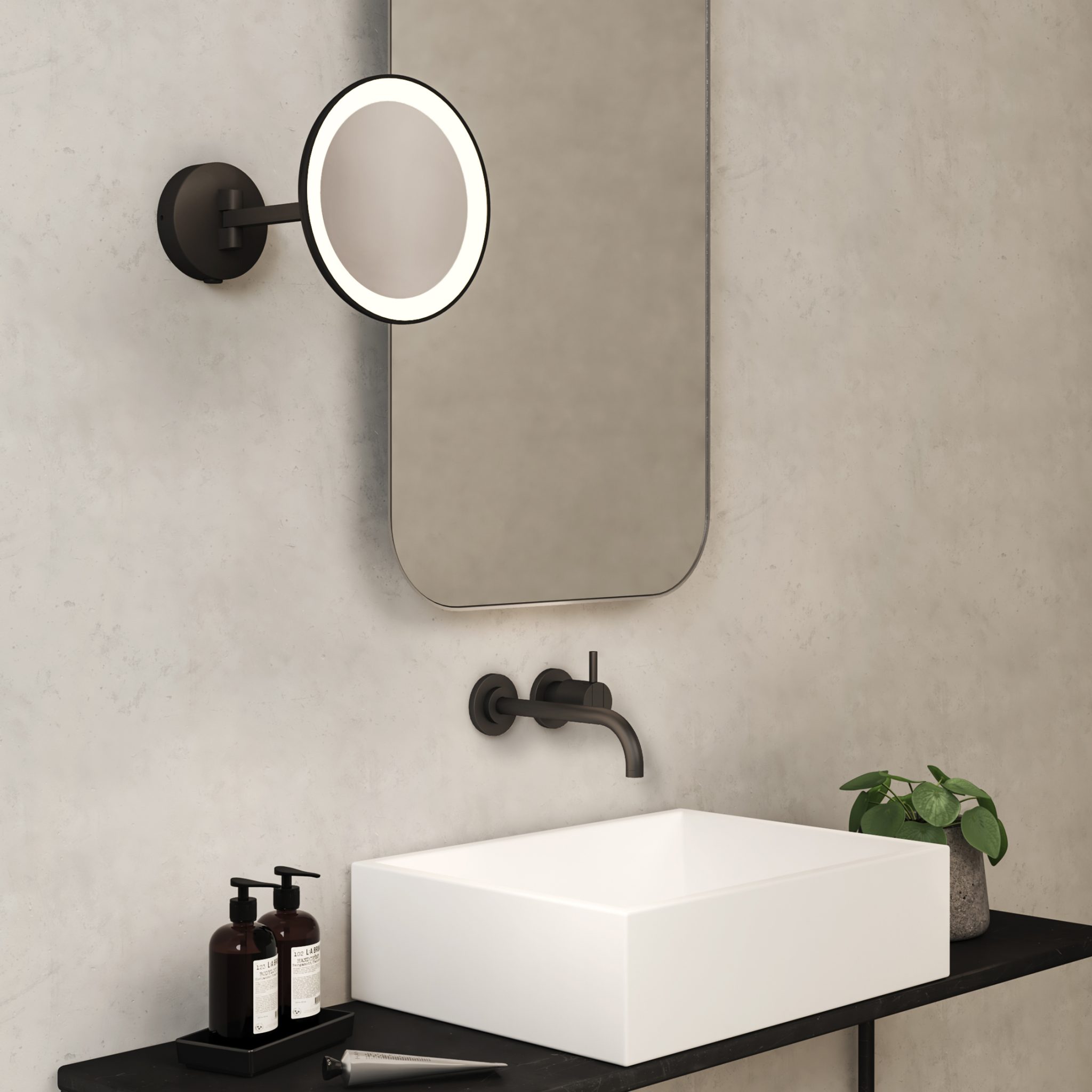 Mascali Round LED sminkspegel från Astro. Den cirkulära sminkspegeln ramas in med ett integrerat LED-ljus.
