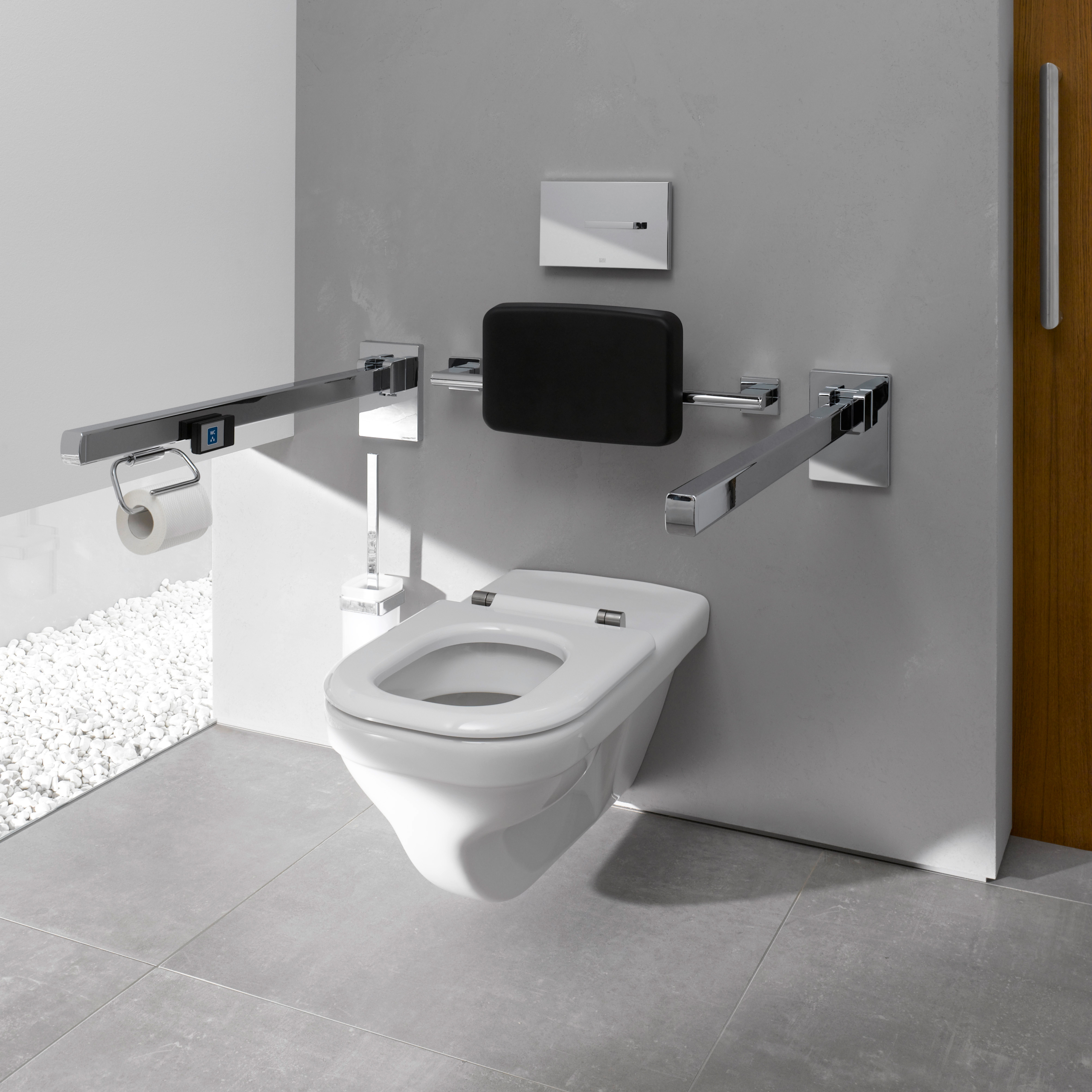 Toalettpappershållare för armstöd i vägg från Emco.